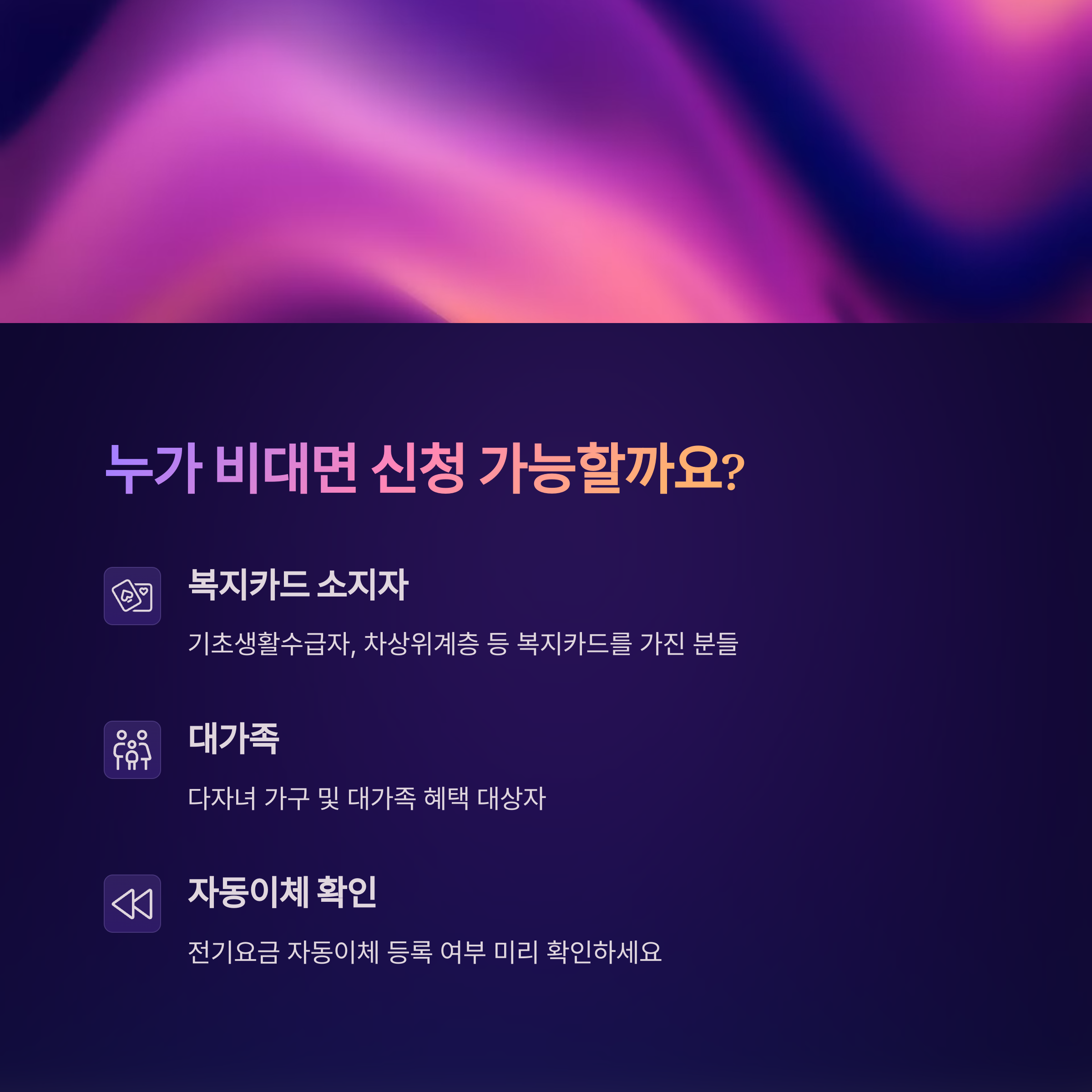 - 본인 명의 전기 사용자 (또는 가족 위임 가능)